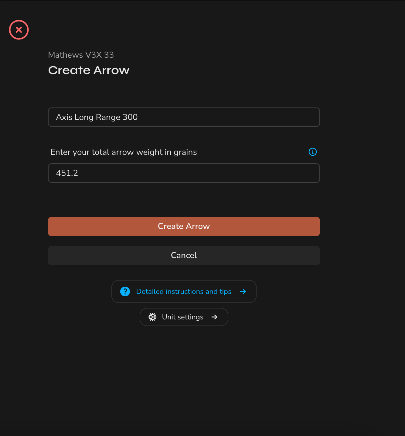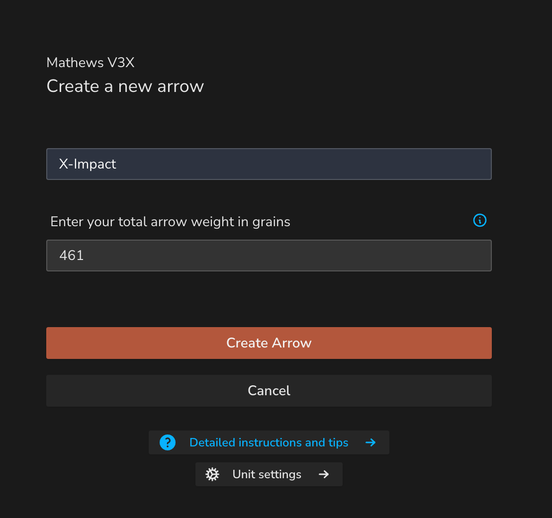 Enter a name for your arrow, and enter the total arrow weight you measured.